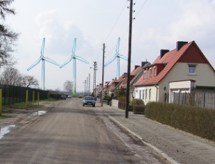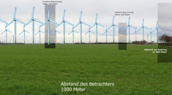 Die eingefügten Windräder haben eine Nabenhöhe von ca. 80 Meter. Heute werden die Windräder erheblich höher gebaut.
